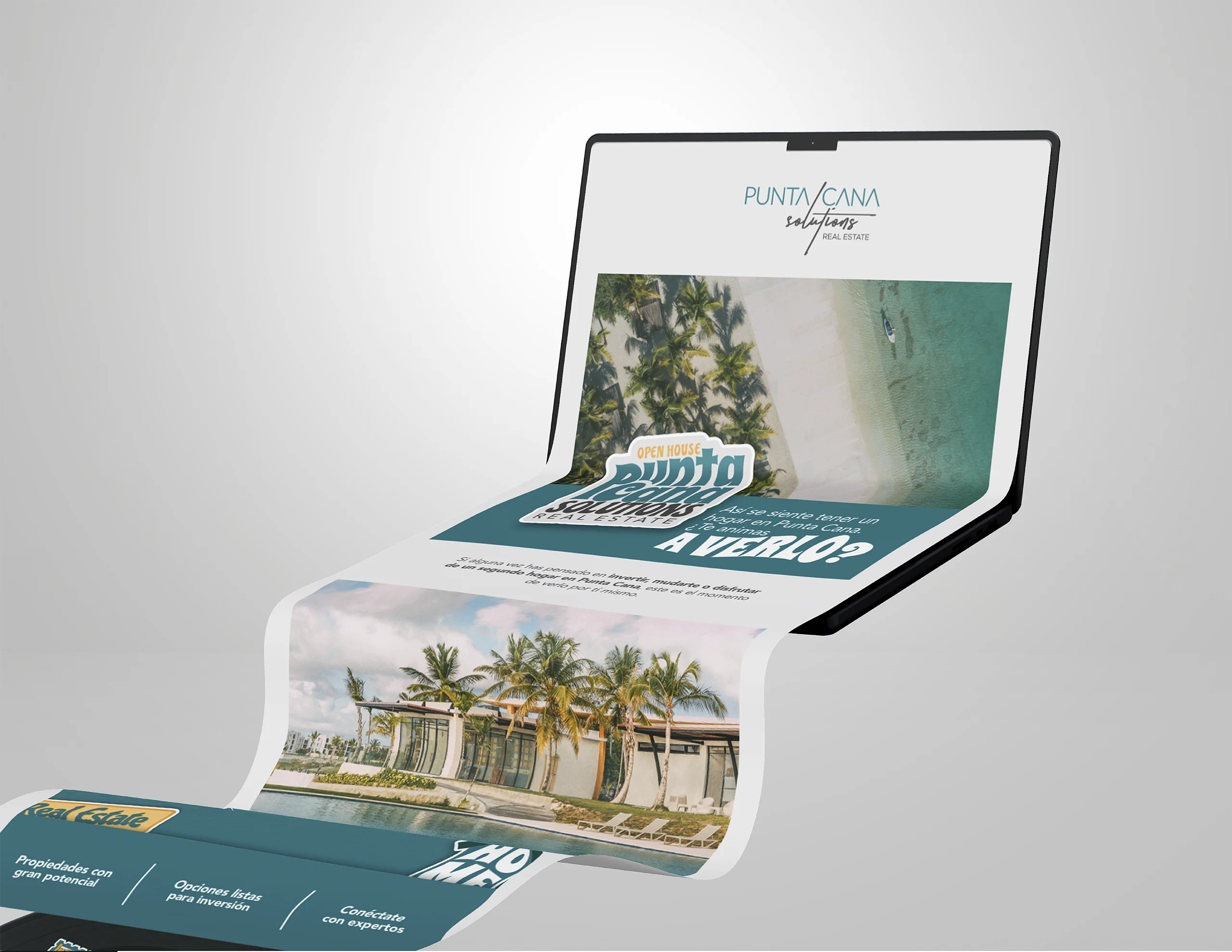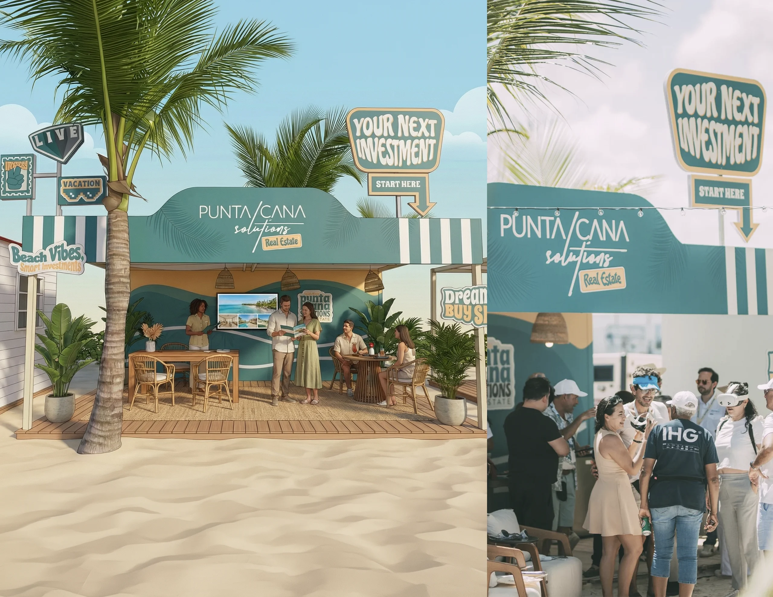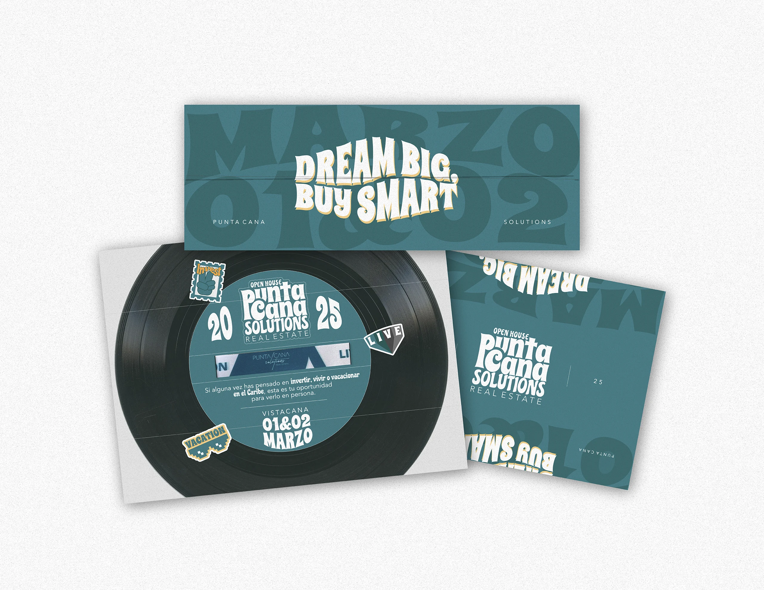 For the 2025 edition of Vistacana’s Open House, we developed the visual identity for Punta Cana Solutions, one of the participating real estate companies within the event. The goal was to create a presence that could stand out in a shared environment—while remaining aligned with the overall concept of the event: Groovy.
